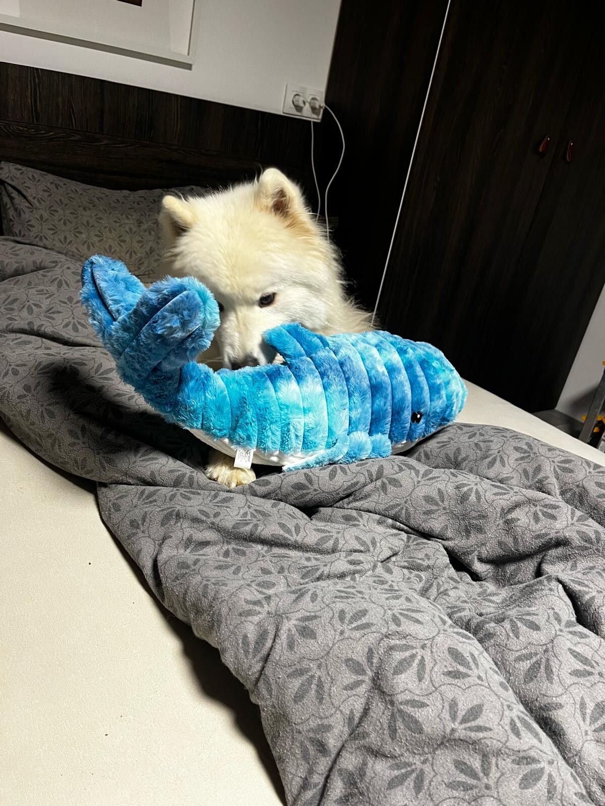 Gönnen Sie Ihrem vierbeinigen Freund Freude am Spiel mit diesem niedlichen Plüschwal!