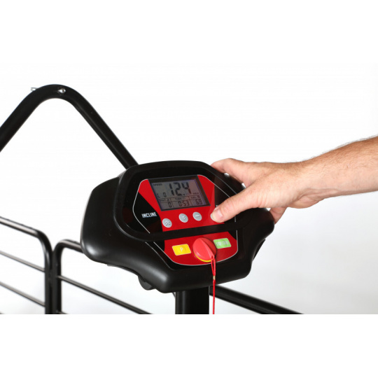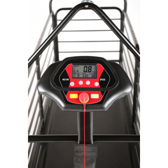 Laufband, das speziell für Besitzer entwickelt wurde, die ihrem Hund maximalen Komfort bei der Bewegung bieten möchten (z.B. bei der Rehabilitation). Die spezielle Federung dämpft Stöße effektiv, der leistungsstarke Motor arbeitet bemerkenswert leise, die Steuerung haben Sie bequem in der Hand. Die Neigung wird automatisch eingestellt, der Hund steigt problemlos ein und aus dank des seitlichen Einstiegs. Drei Schichten widerstandsfähigen Lacks schützen die Oberfläche vor Kratzern und Korrosion.