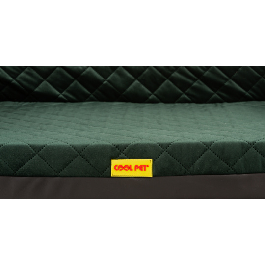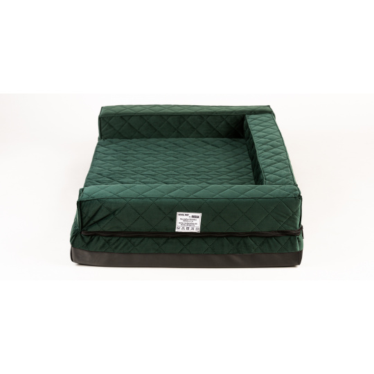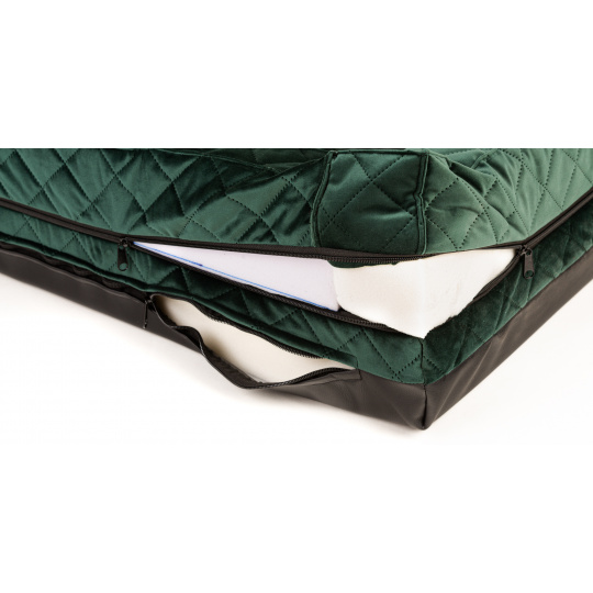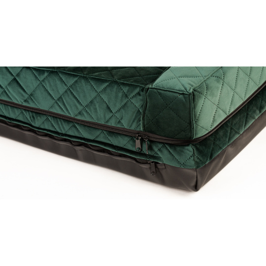 Orthopädisches Hundebett - grüner gestepptes Velours/schwarzes Kunstleder