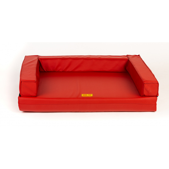Orthopädisches Hundebett, mit gepolstertem Rand - rotes Kunstleder