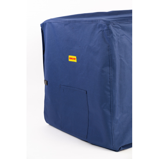 Abdeckung für Transportkäfig. Die raffinierte Konstruktion für variable Verwendung ermöglicht das Abdecken der einzelnen Seiten des Käfigs - seitlich eine Seitentasche für alles Notwendige und auf der anderen Seite ein Fenster, das geöffnet/geschlossen werden kann. Aus festem, wasserdichtem Material und einem Fenster an der Seite, alles aus abwaschbarem Material.