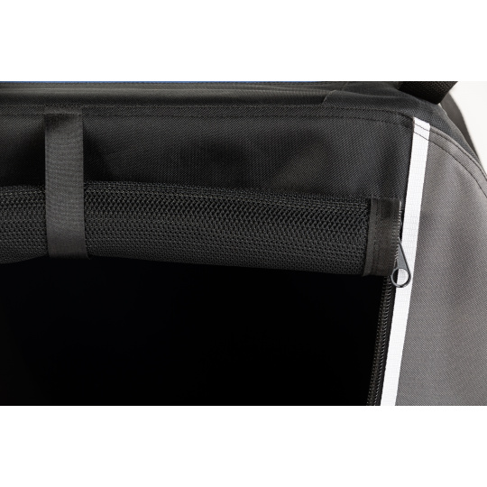 Reisen Sie sicher und bequem mit Ihrem Hund oder Ihrer Katze. Vermeiden Sie Verletzungen oder Bußgelder, indem Sie Ihren vierbeinigen Freund sichern. Schauen Sie sich in der Galerie das Video an, wie man eine Transportbox für Haustiere einfach auseinander- und zusammenbaut. Die Box lässt sich bequem an den Ecken oben mit einem Sicherheitsgurt oder Riemen usw. an den Griffen befestigen.. Faltbares Textilhäuschen COOL PET mit stabiler innerer Stahlkonstruktion, sehr leicht zu tragen und einfaches Zusammenklappen/Aufklappen. Der innere Stahlrahmen gewährleistet eine lange Lebensdauer und den Schutz Ihres Hundes. Griffe zur Führung der Sicherheitsgurte erhöhen die Sicherheit Ihres Hundes. Das Häuschen kann ebenso auf den Rücksitzen platziert werden. Spezialgewebe, widerstandsfähiges Netzgewebe wird in allen Fenstern und am Eingang verwendet - eines vorne. Schwere Reißverschlüsse gewährleisten eine einfache Handhabung und lange Haltbarkeit. Wasserfeste Grundierung schützt vor Feuchtigkeit, z.B. aus nassem Gras nicht eindringt. Ideal für den Transport von Hunden und Katzen im Auto, auf Reisen, Ausstellungen, im Urlaub und für den Heimgebrauch. Der zusammengeklappte Karton ist in der Tragetasche platziert.